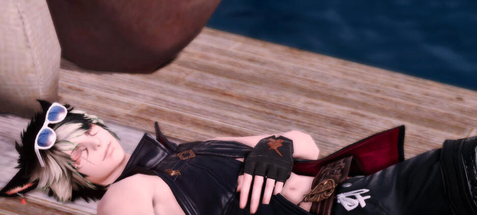 ODD CATNAPS: V'ahlis can be found in various locations around La Noscea simply lounging. He's most frequently seen sleeping about in the docks of Limsa Lominsa.